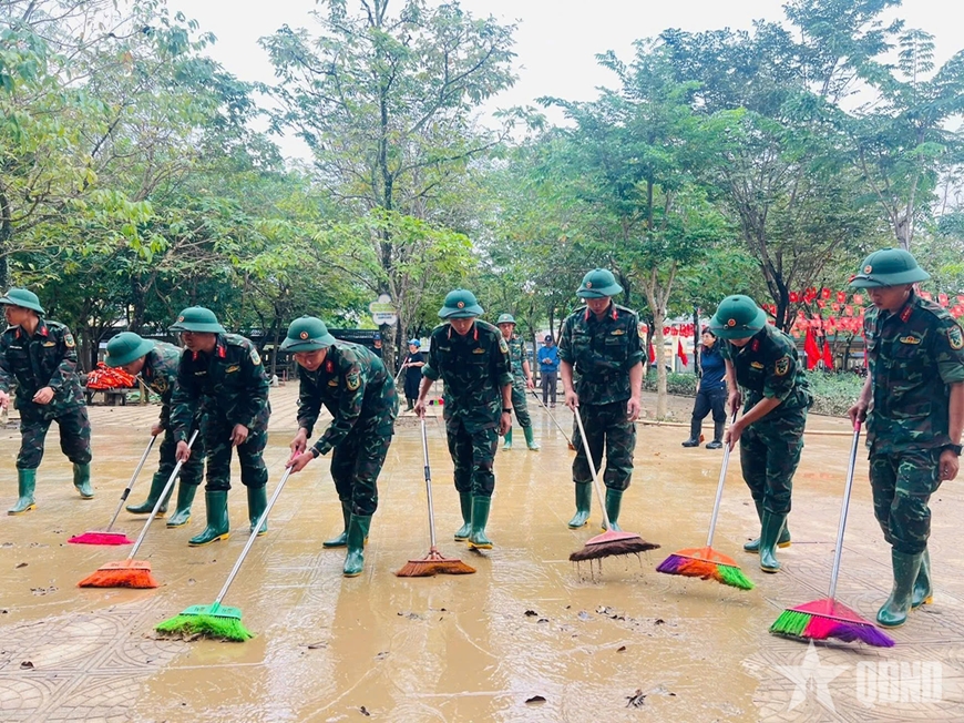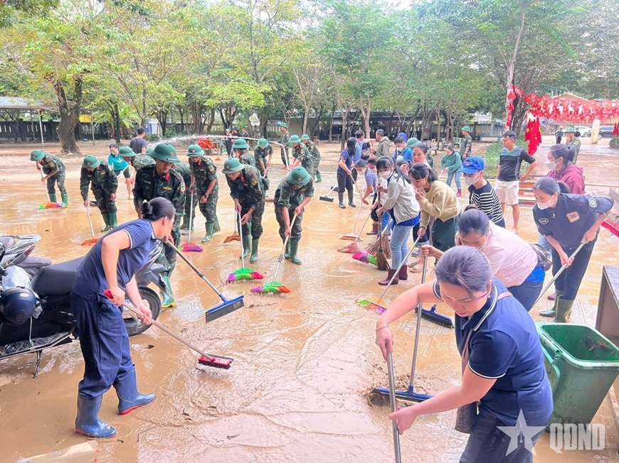 Trung tá Tạ Văn Tú, Chính ủy Trung đoàn 6 cho biết: “Mấy ngày nay, cán bộ, chiến sĩ làm việc với tinh thần khẩn trương nhất, giúp dân dọn dẹp vệ sinh môi trường và khắc phục hậu quả do lũ lớn gây ra. Tuần trước, vừa hoàn thành nhiệm vụ trở về trong niềm vui xúc động của bà con thì tuần này nước lũ dâng cao trở lại. Bao nhiêu công sức của bộ đội bỗng chốc trôi theo dòng nước lũ, nhưng chúng tôi động viên anh em không được chùn bước, phải cố gắng hết sức để học sinh sớm được đến trường và bà con ổn định cuộc sống”.