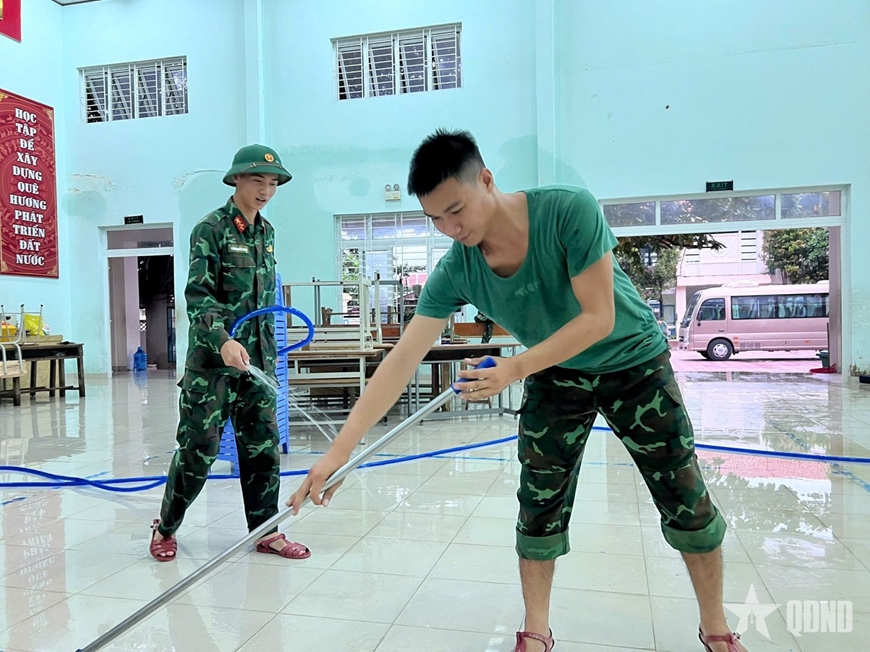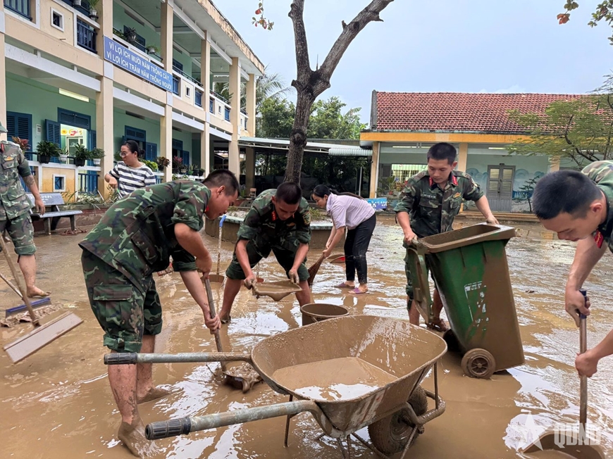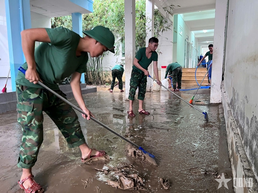Đơn vị đã huy động 60 cán bộ, chiến sĩ tham gia dọn dẹp bùn đất, thu gom rác thải, vận chuyển và sắp xếp lại cơ sở vật chất tại Trường THCS Nguyễn Đình Chiểu, Trường THCS Lương Thế Vinh (phường Tây Nha Trang) và Trường Tiểu học Diên Phú 1 (xã Diên Điền).