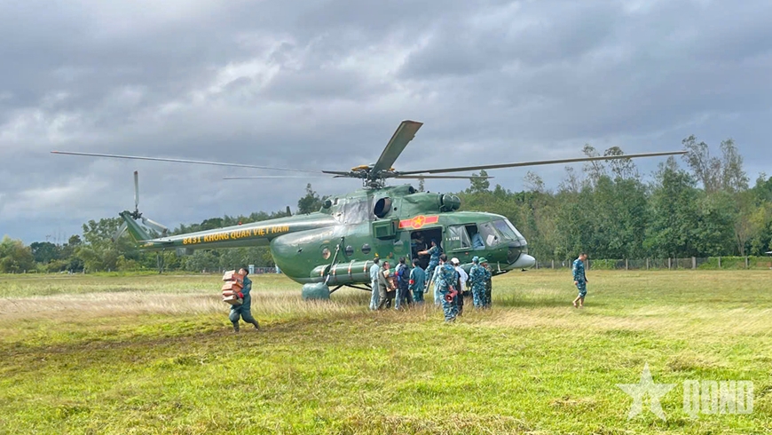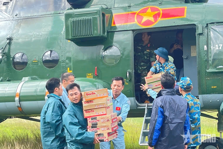 Sáng 23-11, thực hiện chỉ đạo của Bộ Quốc phòng, Quân chủng Phòng không - Không quân đã sử dụng trực thăng của Trung đoàn Không quân 930 (Sư đoàn Không quân 372) bay tiếp tế lương thực, thực phẩm đến nhân dân vùng lũ tỉnh Đắk Lắk.