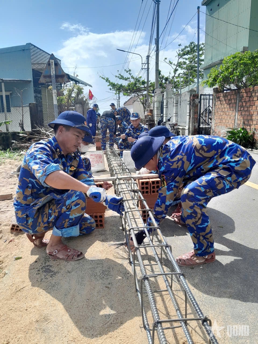 | Cán bộ, chiến sĩ Trung đoàn 351, Vùng 3 Hải quân tham gia "Chiến dịch Quang Trung", xây nhà giúp dân vùng lũ (12-2025). Ảnh: LÊ HƯỚNG |