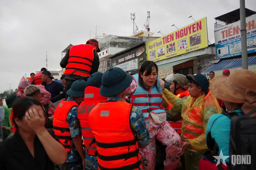 | Lực lượng cứu hộ của Nhà trường đưa người dân đến nơi an toàn. |