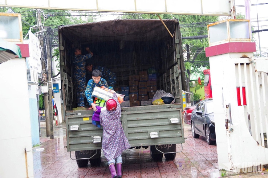 Một lực lượng phối hợp với Hội Chữ thập đỏ tỉnh Khánh Hòa và Hội Cựu chiến binh phường Nam Nha Trang vận chuyển lương thực, nước uống, áo phao, chăn màn và các nhu yếu phẩm cần thiết đến các khu vực còn bị cô lập.