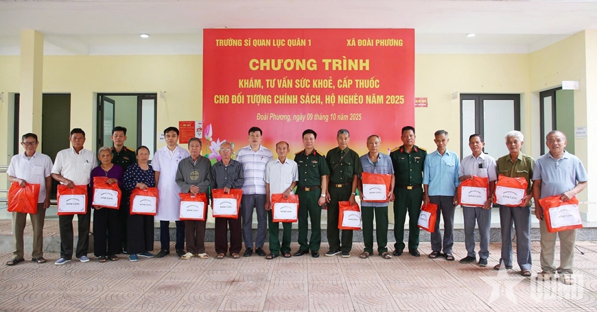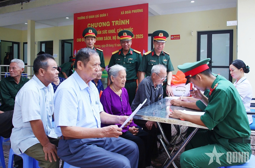 Trường Sĩ quan Lục quân 1 khám sức khỏe, tặng quà các đối tượng chính sách ở xã Đoài Phương.