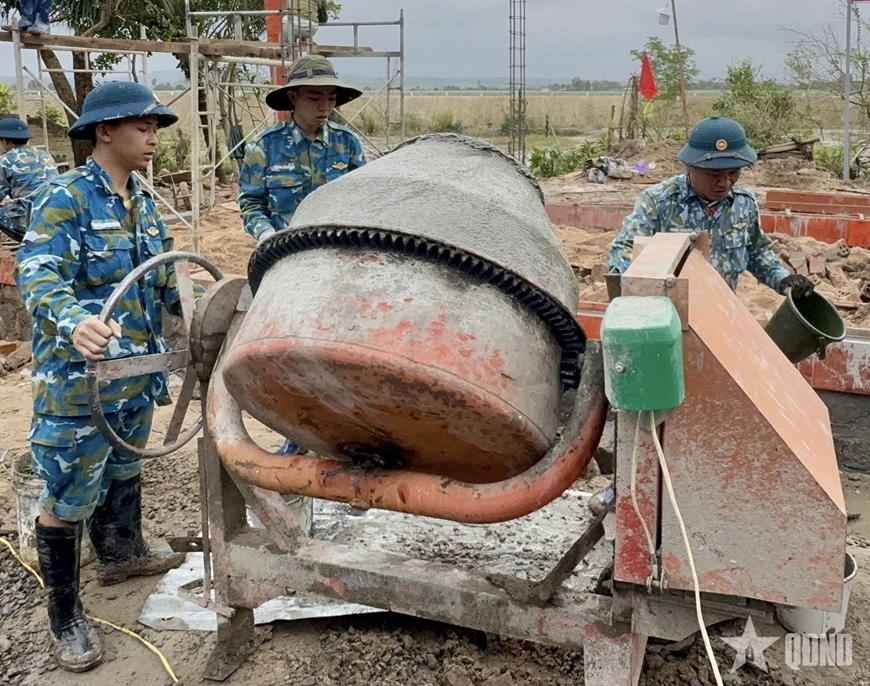 Suốt gần một tuần qua, những người lính canh trời vốn quen với thao trường nắng gió nay lại trở thành những “thợ xây” đặc biệt, đặt những viên gạch đầu tiên cho mái ấm mới của người dân vùng lũ. Nơi ngủ có khi chỉ là mái hiên tạm, bữa cơm ăn vội giữa giờ nghỉ ngắn; quần áo vừa khô lại ướt. Nhưng ai nấy đều phấn chấn vì những phần nền móng quan trọng đã hoàn thành bảo đảm chất lượng, tiến độ nhanh hơn dự kiến. Bà con tin tưởng sẽ kịp có nhà mới trong dịp Tết.