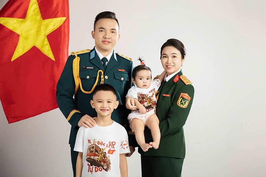 Gia đình Trung tá Nguyễn Đình Đạt và Đại úy QNCN Nguyễn Vũ Thu Hường. Ảnh do nhân vật cung cấp |