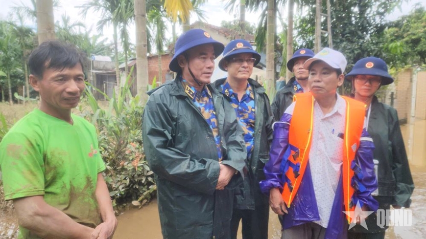 | Chính ủy Vùng 3 Hải quân thăm hỏi, động viên người dân trên địa bàn bị ngập lụt. |