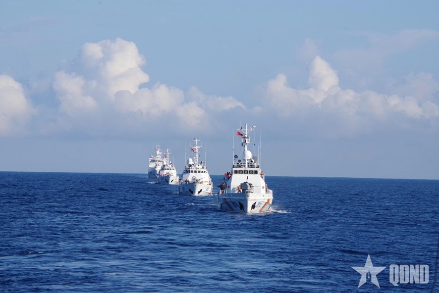 Các biên đội tàu của Vùng Cảnh sát biển 2 huấn luyện trên biển.