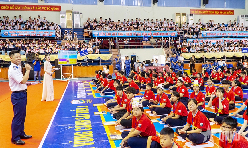 Đông đảo học sinh tham gia Cuộc thi “Em yêu biển, đảo quê hương” do Vùng Cảnh sát biển 3 tổ chức.