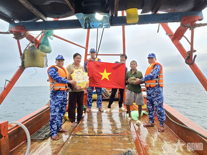 Trong dịp Tết, bên cạnh việc tuyên truyền pháp luật, tổ công tác của Tàu CSB 3002 còn quan tâm thăm hỏi, động viên, chúc Tết, tặng quà cho ngư dân đang đánh bắt xa bờ. Những phần quà Tết giản dị thấm đượm nghĩa tình quân dân, thể hiện sự quan tâm sâu sắc của cán bộ, chiến sĩ Cảnh sát biển đối với ngư dân khi Tết đến, xuân về.
