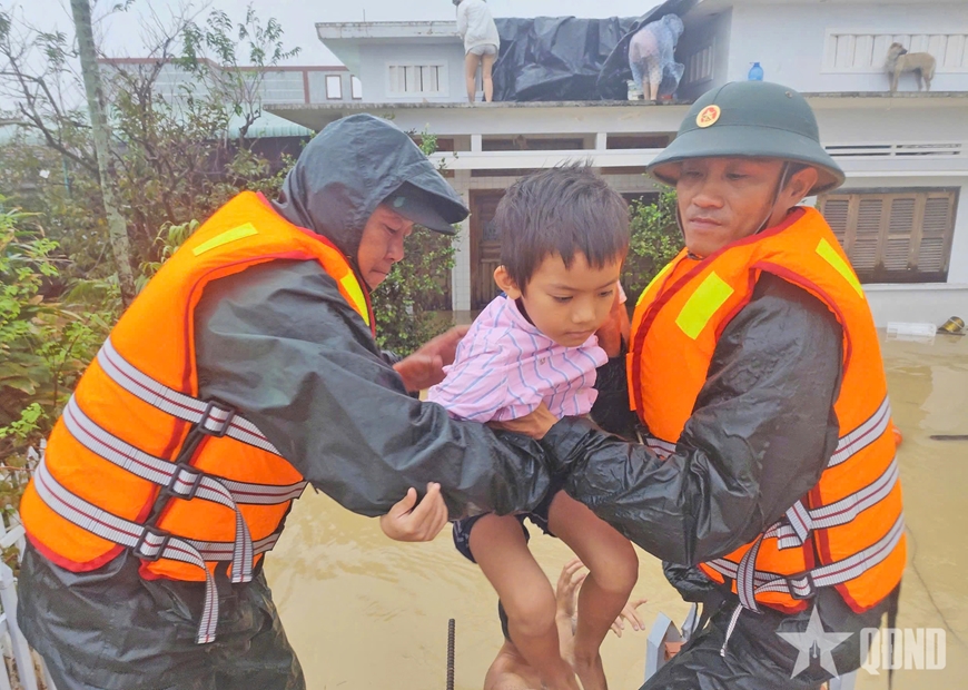 | Ban Chỉ huy Phòng thủ khu vực 1 - Hoài Nhơn Nam ứng cứu, đưa các em nhỏ đến nơi an toàn. |