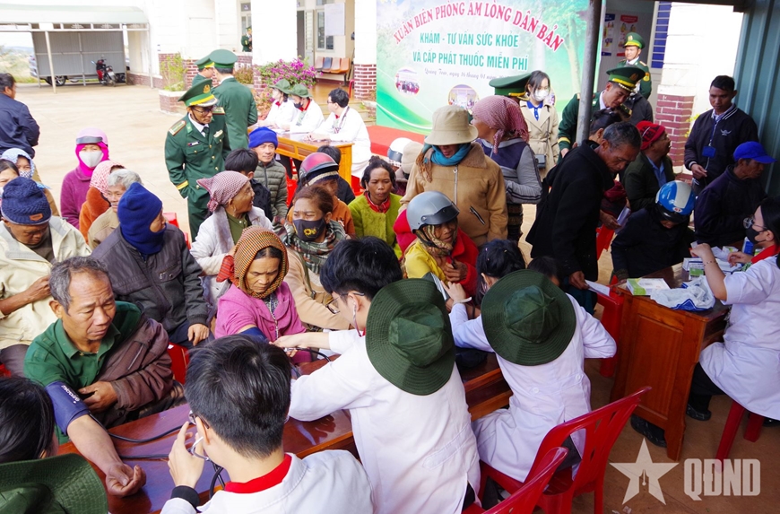 Riêng dịp Tết Nguyên đán Bính Ngọ 2026, Ban chỉ huy BĐBP tỉnh Lâm Đồng đã phối hợp với chính quyền địa phương tổ chức Chương trình “Xuân biên phòng ấm lòng dân bản” tại 19/19 xã, phường, đặc khu biên giới, biển, đảo của tỉnh; tặng hơn 3.500 chiếc bánh chưng; tổ chức khám, tư vấn sức khỏe cho hàng nghìn lượt người dân; trao 5.000 suất quà; hỗ trợ xây dựng 10 nhà đại đoàn kết; trao 200 suất học bổng và 150 mô hình sinh kế cho bà con. Bà Lương Thị Bống ở bản Đầm Giỏ, xã Thuận Hạnh, tỉnh Lâm Đồng, chia sẻ: “Đúng là làm ấm lòng dân bản thật, cảm ơn các chú bộ đội đã tặng quà, khám bệnh, cấp thuốc, quan tâm đến những người cao tuổi vùng biên giới như chúng tôi”.