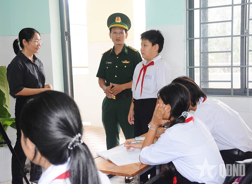 Cán bộ Đồn Biên phòng Lộc Thành nắm tình hình học tập của “Con nuôi đồn biên phòng”.