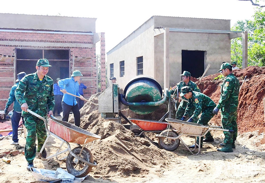 | Bộ đội Biên phòng tỉnh Đồng Nai giúp nhân dân xây dựng nhà ở. |