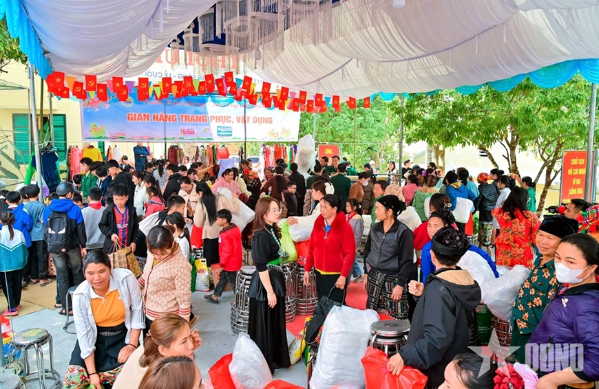 Từ sáng sớm tinh khôi, khi sương mù còn bảng lảng quấn quýt trên những triền núi cao, con đường dẫn vào Đồn Biên phòng Quang Chiểu đã rộn rã tiếng nói cười. Đồng bào các dân tộc Mông, Thái, Dao từ các bản xa, bản gần, trong những bộ trang phục truyền thống rực rỡ sắc màu, nô nức kéo về sân đồn như đi trẩy hội. Giữa không gian khoáng đạt của núi rừng, hình ảnh những người lính quân hàm xanh tất bật, tận tụy chuẩn bị từng gian hàng, từng phần quà đã tạo nên một bức tranh xuân đầy cảm xúc và tình người.