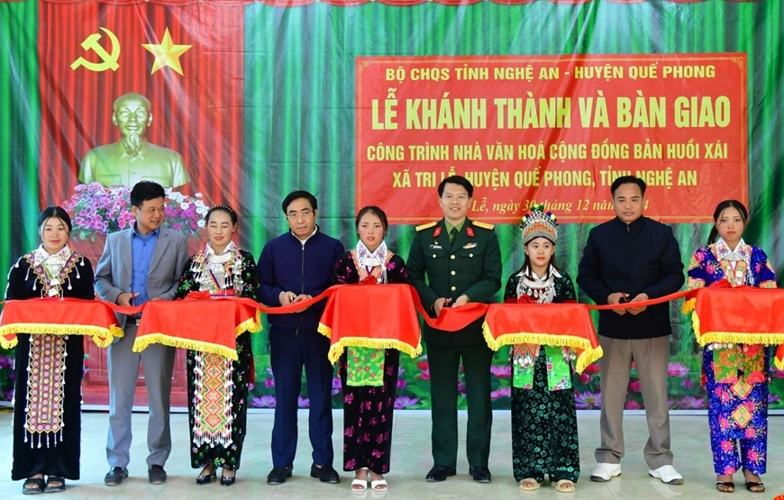 | Bộ CHQS Nghệ An bàn giao nhà sinh hoạt cộng đồng tặng bản Huồi Xái, xã Tri Lễ, huyện Quế Phong. |
