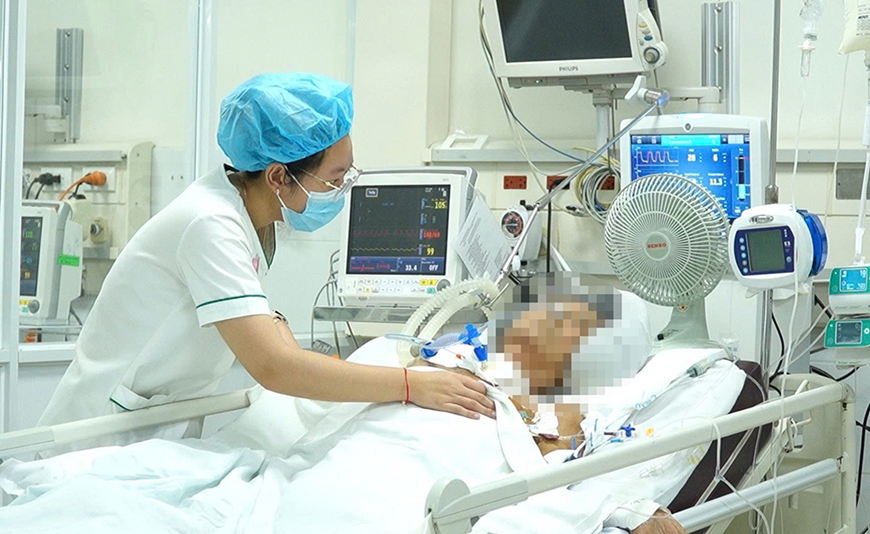 | Cán bộ, nhân viên Khoa Hồi sức tích cực, Bệnh viện Quân y 175 tận tình chăm sóc bệnh nhân. |