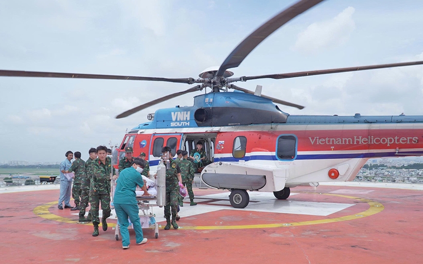 Cán bộ, nhân viên Khoa Hồi sức tích cực, Bệnh viện Quân y 175 giữ vai trò nòng cốt trong các tổ cấp cứu đường không.