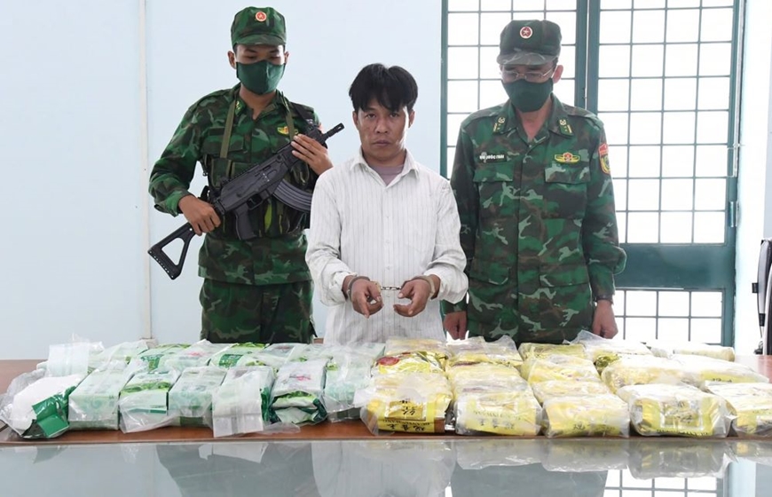 Bộ đội Biên phòng tỉnh Tây Ninh bắt giữ đối tượng và tang vật ma túy trong Chuyên án TN-1024P. Ảnh: DUY HIỂN