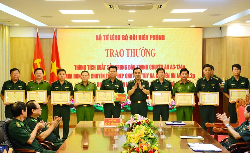 Bộ tư lệnh Bộ đội Biên phòng khen thưởng các tập thể, cá nhân có thành tích xuất sắc trong Chuyên án A3-124p đấu tranh chống tội phạm ma túy, đầu năm 2024. Ảnh: HÙNG KHOA |