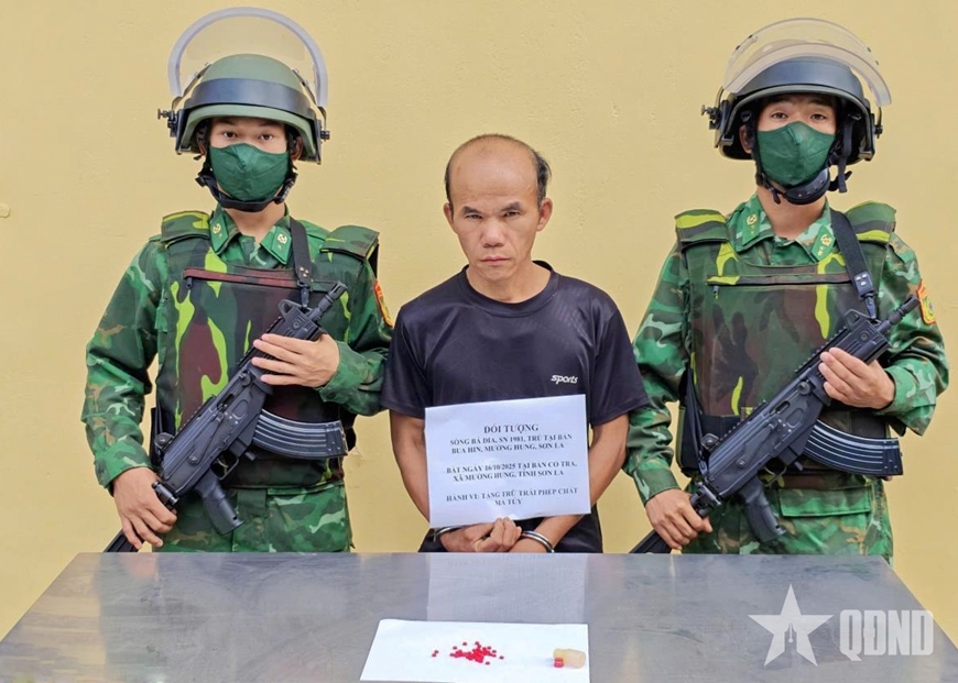 Trước đó, tại khu vực thuộc xã Mường Hung (tỉnh Sơn La), Đồn Biên phòng Mường Cai chủ trì, phối hợp với tổ công tác của Phòng Nghiệp vụ (Ban chỉ huy Bộ đội Biên phòng tỉnh Sơn La) và Công an xã Mường Hung phát hiện, bắt giữ đối tượng Sồng Bả Dia (sinh năm 1981, trú tại bản Bua Hin, xã Mường Hung) có hành vi tàng trữ trái phép 44 viên ma túy tổng hợp.