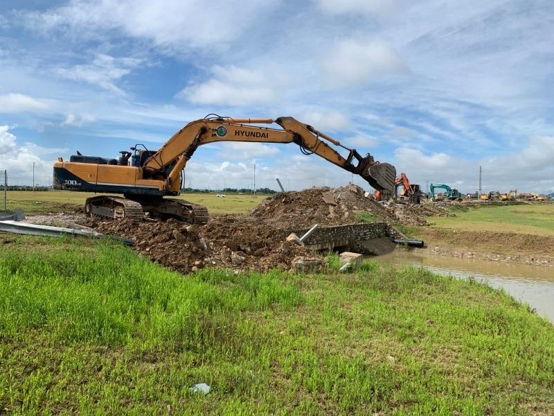 | UBND huyện Nghi Lộc và doanh nghiệp đang thi công các hạng mục của dự án Khu công nghiệp WHA. Ảnh: HOA LÊ |
