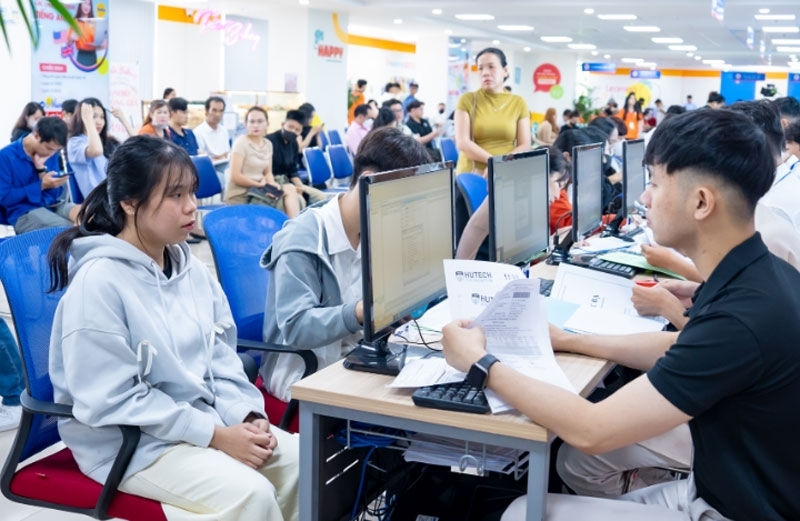 | Thí sinh nộp hồ sơ làm thủ tục nhập học tại Trường Đại học Công nghệ TP Hồ Chí Minh. |