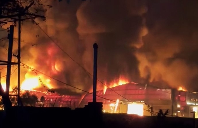 Khu xưởng nhựa tại xã Việt Yên, tỉnh Hưng Yên cháy dữ dội. Ảnh: vtcnews.vn