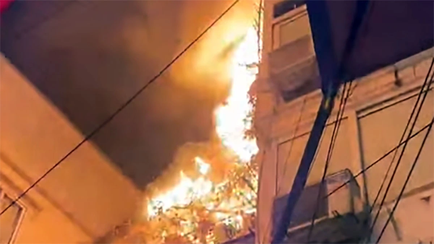 | Cảnh sát tiếp cận hiện trường chữa cháy. |