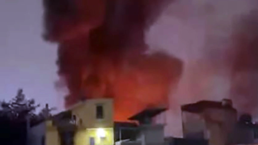 | Ngọn lửa bốc cháy ngùn ngụt tạo thành cột khói cao hàng chục mét. |