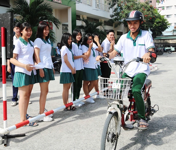 Cũng với mục tiêu bồi dưỡng kỹ năng tham gia giao thông an toàn cho học sinh, cuối tháng 12-2018, Ban giám hiệu Trường THPT Thăng Long (quận 5) phối hợp với Phòng Văn hóa-Thông tin quận tổ chức “Ngày hội An toàn giao thông (ATGT)”. Các học sinh được hướng dẫn tìm hiểu Luật Giao thông đường bộ, tư thế ngồi trên xe an toàn, thi lắp ghép biển báo giao thông và xử lý tình huống trên sa hình. Ngoài ra, các em còn được tham gia trò chơi về ATGT như: Nhận biết tác dụng của biển báo hiệu trên đường, giải ô chữ; xem một số tiểu phẩm hài lồng ghép những quy định của pháp luật giao thông để tạo sự hấp dẫn, giúp lứa tuổi học trò tiếp thu nhanh và ghi nhớ sâu hơn, góp phần làm cho buổi tuyên truyền thêm sinh động, hiệu quả. Cô Lê Thị Thúy Hồng, Phó hiệu trưởng Trường THPT Thăng Long, cho biết: “Đây là phương pháp giáo dục trực quan mang lại hiệu quả rõ rệt trong việc nâng cao ý thức chấp hành Luật Giao thông đường bộ và góp phần hạn chế tai nạn giao thông cho các em học sinh”.