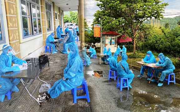 Lực lượng chức năng tại Cửa khẩu quốc tế Tây Trang làm thủ tục tiếp nhận công dân. Ảnh: ANH DŨNG.