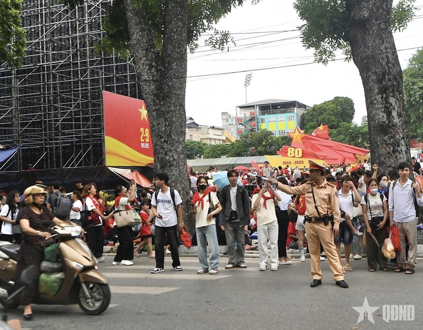 Trước thềm lễ kỷ niệm, nhiều buổi hợp luyện, tổng duyệt đã được tổ chức với sự tham gia của các khối lực lượng, phương tiện, người dân đến theo dõi. Lưu lượng giao thông tăng cao nhưng vẫn được duy trì ổn định nhờ các phương án phân luồng, tổ chức giao thông từ xa. Lực lượng CSGT Hà Nội phối hợp chặt chẽ với Cục CSGT và Công an các tỉnh giáp ranh, hạn chế phương tiện vào khu vực trung tâm, đặc biệt các tuyến dẫn về Quảng trường Ba Đình. Các đội CSGT địa bàn bố trí quân số tại những nút giao trọng điểm, hướng dẫn người dân đi theo lộ trình thay thế, không để xảy ra ùn tắc kéo dài.