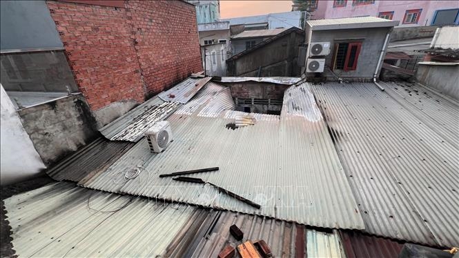 Phần mái căn nhà xảy ra cháy trong hẻm đường Tô Ký, phường Đông Hưng Thuận (quận 12 trước đây), TP Hồ Chí Minh.