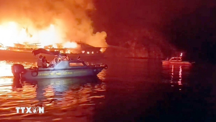 Lúc 11 giờ 15 phút ngày 29-3, một tàu cá của ngư dân xã Quang Phú (thành phố Đồng Hới, Quảng Bình) trong lúc đang neo đậu trên sông Nhật Lệ thì bất ngờ bốc cháy dữ dội.