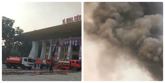 Trước đó, khoảng 6 giờ sáng, một cột khói đen xuất hiện tại hội trường tầng 3 của Cung Văn hoá Lao động hữu nghị Việt Xô.