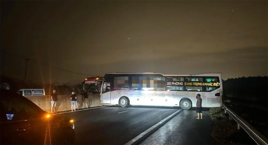 Cụ thể: Vụ tai nạn thứ nhất xảy ra khi một xe khách đang lưu thông bất ngờ tông vào dải phân cách cứng giữa đường và lao vào lề lường làm hư hỏng phương tiện và nhiều thiết bị an toàn giao thông. Tiếp đó, một xe khách khác khi đang lưu thông khu vực này cũng tông vào dải phân cách và lao vào lề đường làm hư hỏng nhiều thiết bị đảm bảo an toàn giao thông.