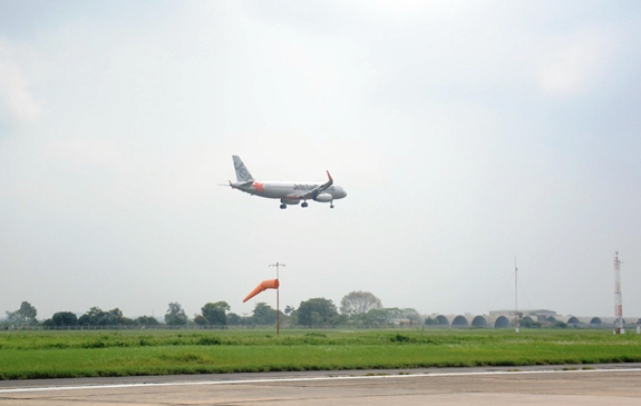 Máy bay hạ cánh tại Cảng hàng không quốc tế Nội Bài. |