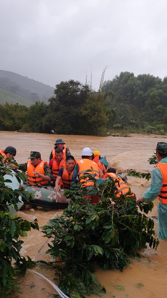 Lực lượng chức năng tham gia cứu hộ, cứu nạn chiều ngày 30-11. |