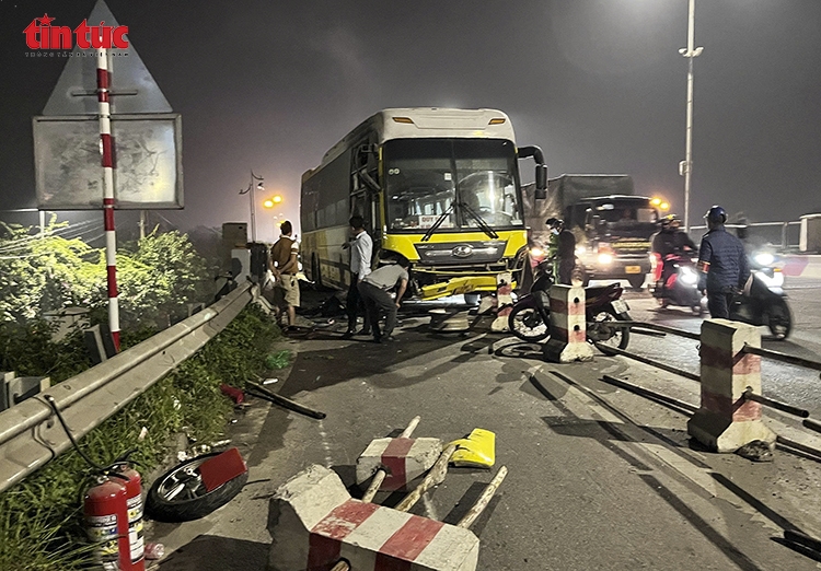 Hiện trường vụ tai nạn trên cầu Thanh Trì. Ảnh: Báo Tin tức