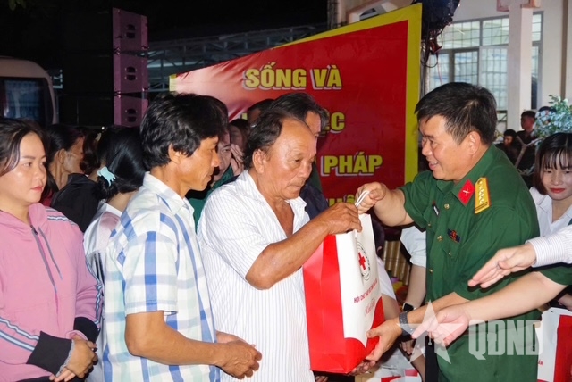 | Tặng quà đối tượng chính sách xã Ia Rvê, tỉnh Đắk Lắk. |