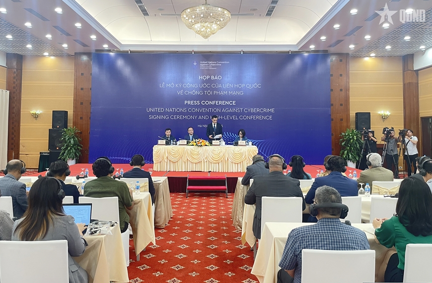 Chia sẻ với các phóng viên đến từ các cơ quan báo chí trong nước và quốc tế tại buổi họp báo, Thứ trưởng Bộ Ngoại giao Đặng Hoàng Giang cho biết, Lễ mở ký Công ước của Liên hợp quốc về chống tội phạm mạng sẽ được tổ chức tại Hà Nội trong hai ngày 25 và 26-10 tới; nhấn mạnh sự kiện này sẽ đặt nền móng cho một văn kiện toàn cầu của Liên hợp quốc trong lĩnh vực phòng, chống tội phạm mạng.