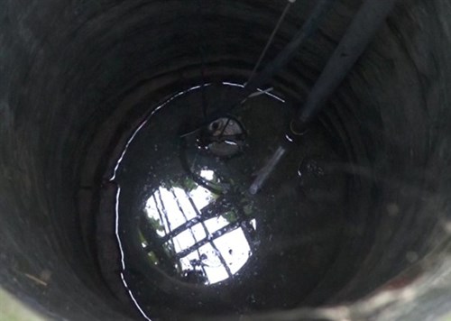 Nước giếng nổi váng đen, không thể dùng để sinh hoạt. Ảnh: Báo Cao Bằng.