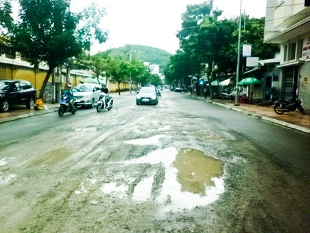 Bạn đọc Nguyễn Thanh Hải ở phường Phước Long, TP Nha Trang, tỉnh Khánh Hòa phản ảnh: Đường Hòn Chồng vừa được nâng cấp mở rộng chưa lâu, nhưng mặt đường đã bị hư hỏng, xuất hiện nhiều “ổ gà, ổ voi” gây khó khăn cho người qua lại.