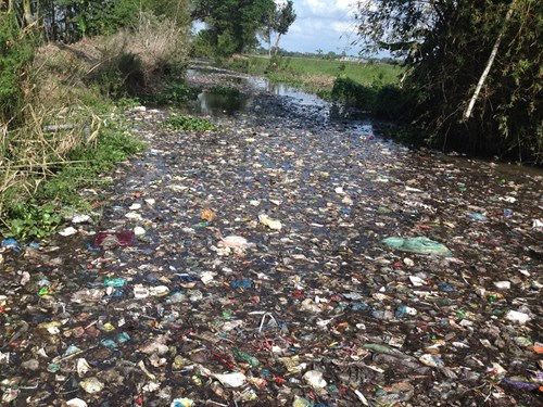 Đủ các loại rác thải hiện diện trên kênh Bờ Thiếc. Ảnh: baotainguyenmoitruong.vn