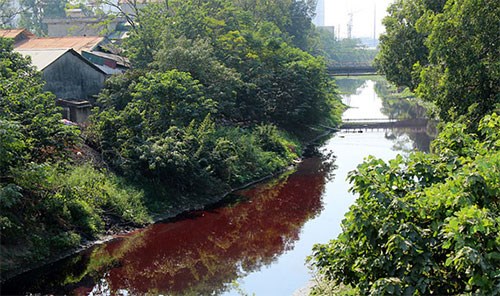 Bạn đọc Trần Thanh Huyền ở thôn Ý La, xã Dương Nội, quận Hà Đông, TP Hà Nội cho biết: Nhánh kênh dẫn La Khê chảy qua xã Dương Nội bị ô nhiễm, đổi màu đỏ quạch khiến khu vực này bốc mùi khó chịu.