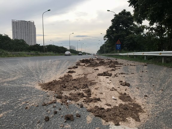 * Ông Phạm Văn Phúc, ở xã Sài Sơn, huyện Quốc Oai, TP Hà Nội cho biết: Trên đại lộ Thăng Long thường xuyên có vật liệu xây dựng, đất đá rơi vãi (xem ảnh), gây mất an toàn cho người và phương tiện tham gia giao thông.