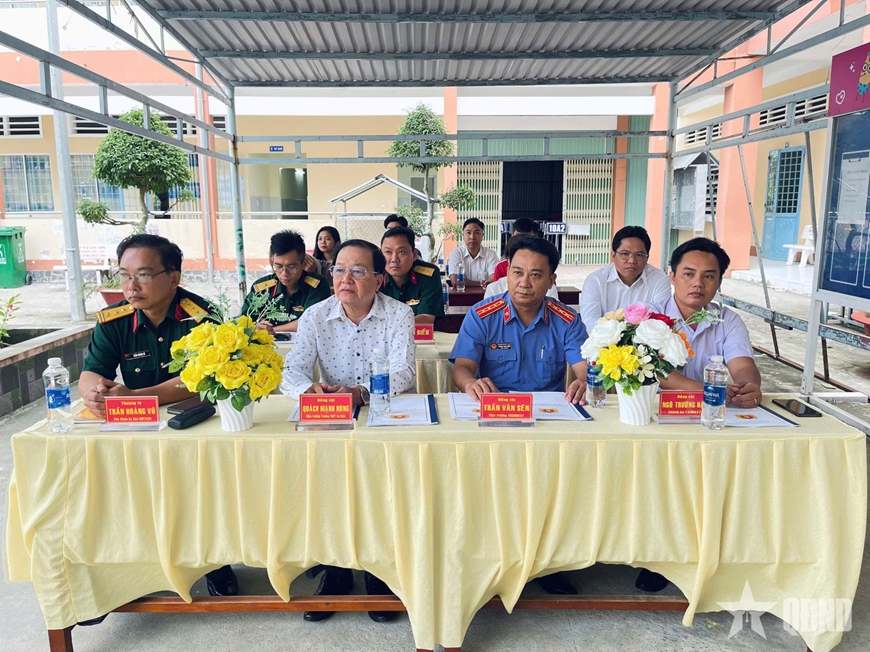 Tham dự phiên tòa có đông đủ cán bộ các cơ quan phối hợp cùng đội ngũ giáo viên, học sinh Trường THPT An Biên và hơn 200 người dân trên địa bàn xã An Biên.