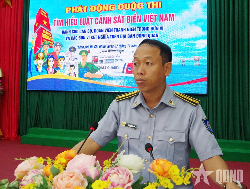 | Đại biểu Chi đội Kiểm ngư số 2 phát động cuộc thi tìm hiểu Luật Cảnh sát biển Việt Nam. |