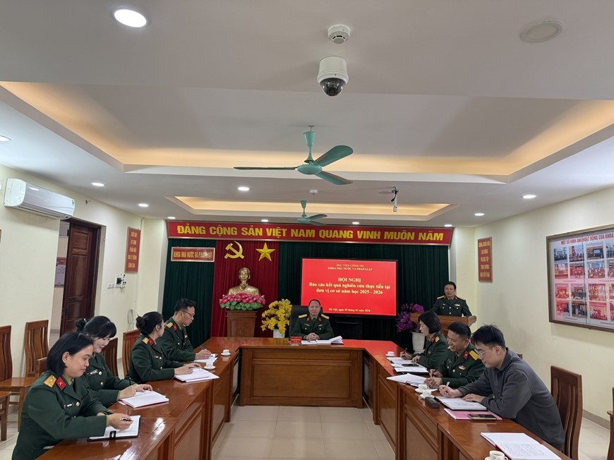 | Hội nghị báo cáo kết quả nghiên cứu thực tiễn tại đơn vị cơ sở năm 2025 của Khoa Nhà nước và Pháp luật, Học viện Chính trị. Ảnh: MẠNH HÀ |