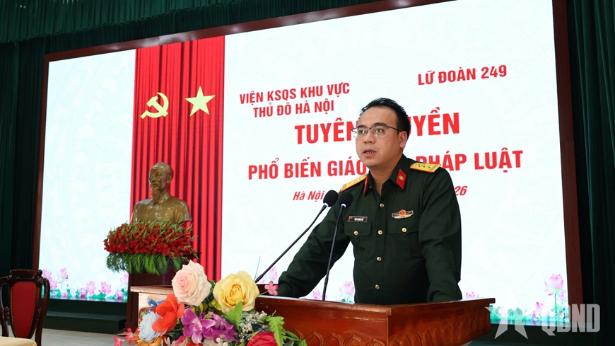 Trong buổi chiều, Thượng tá Ngô Quang Huy, Viện trưởng Viện Kiểm sát quân sự khu vực Thủ đô Hà Nội đã giới thiệu 3 chuyên đề: Quy định của pháp luật về tội “Đánh bạc”, “Tổ chức đánh bạc”, một số biện pháp phòng ngừa, ngăn chặn xảy ra trong Quân đội; quy định của pháp luật về tham gia giao thông đường bộ và các giải pháp bảo đảm an toàn giao thông đường bộ; Luật Nghĩa vụ quân sự năm 2025 và giới thiệu một số quy định của Thông tư số 143/2023/TT-BQP ngày 27-12-2023 quy định xử lý kỷ luật trong Quân đội nhân dân Việt Nam và một số điều luật cụ thể quy định tại Chương XXV Bộ luật Hình sự quy định về các tội xâm phạm nghĩa vụ, trách nhiệm của quân nhân và trách nhiệm của người phối thuộc với Quân đội trong chiến đấu, phục vụ chiến đấu.